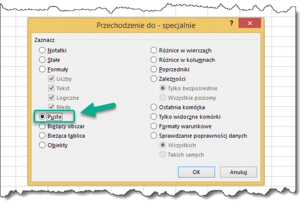 4. Z listy opcji wybieramy: Puste i naciskamy Ok.